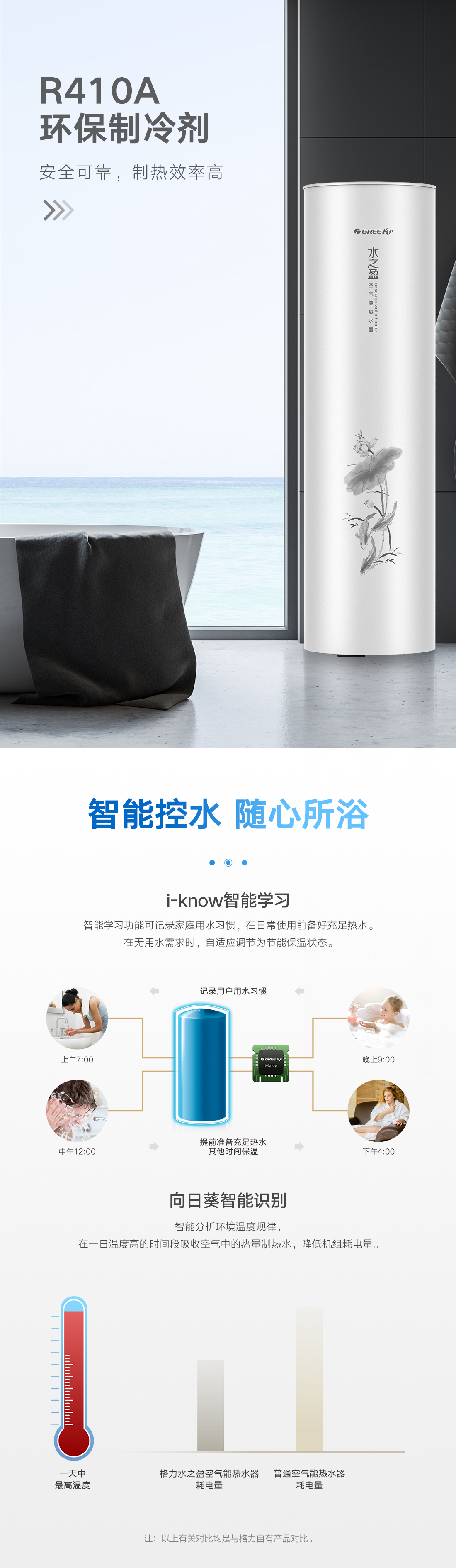 新型環(huán)保冷媒,綠色節(jié)能更高效,內置增容、向日葵、i-know等個性化功能;給您的沐浴帶來多樣化體驗